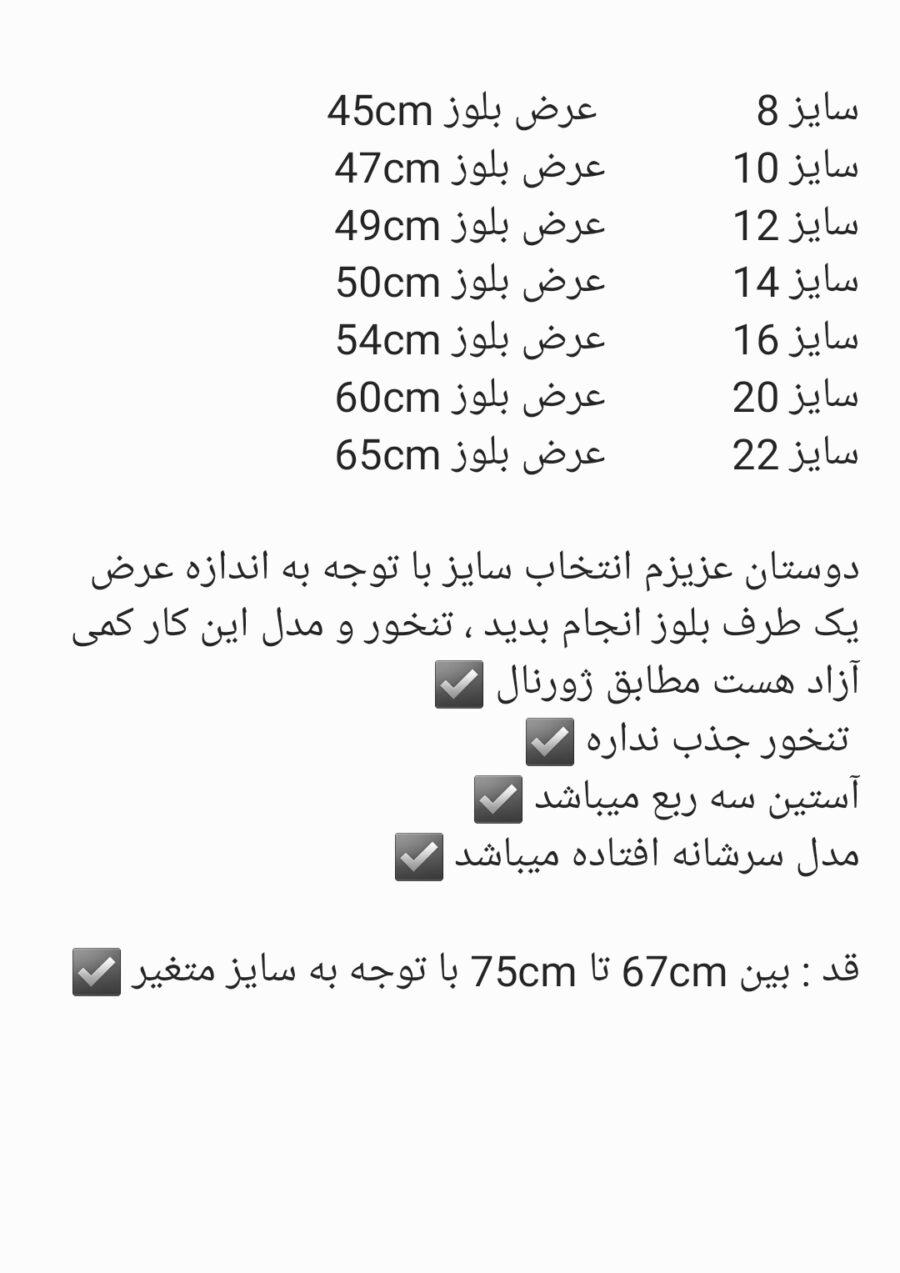 برای انتخاب سایز به اسلاید آخر مراجعه فرمایید