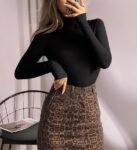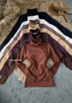 مدل ساده کلاسیک: یقهاسکی بلند، آستین بلند با فینگر، بدون دوخت اضافه 👌