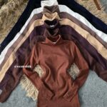 مدل ساده کلاسیک: یقهاسکی بلند، آستین بلند با فینگر، بدون دوخت اضافه 👌