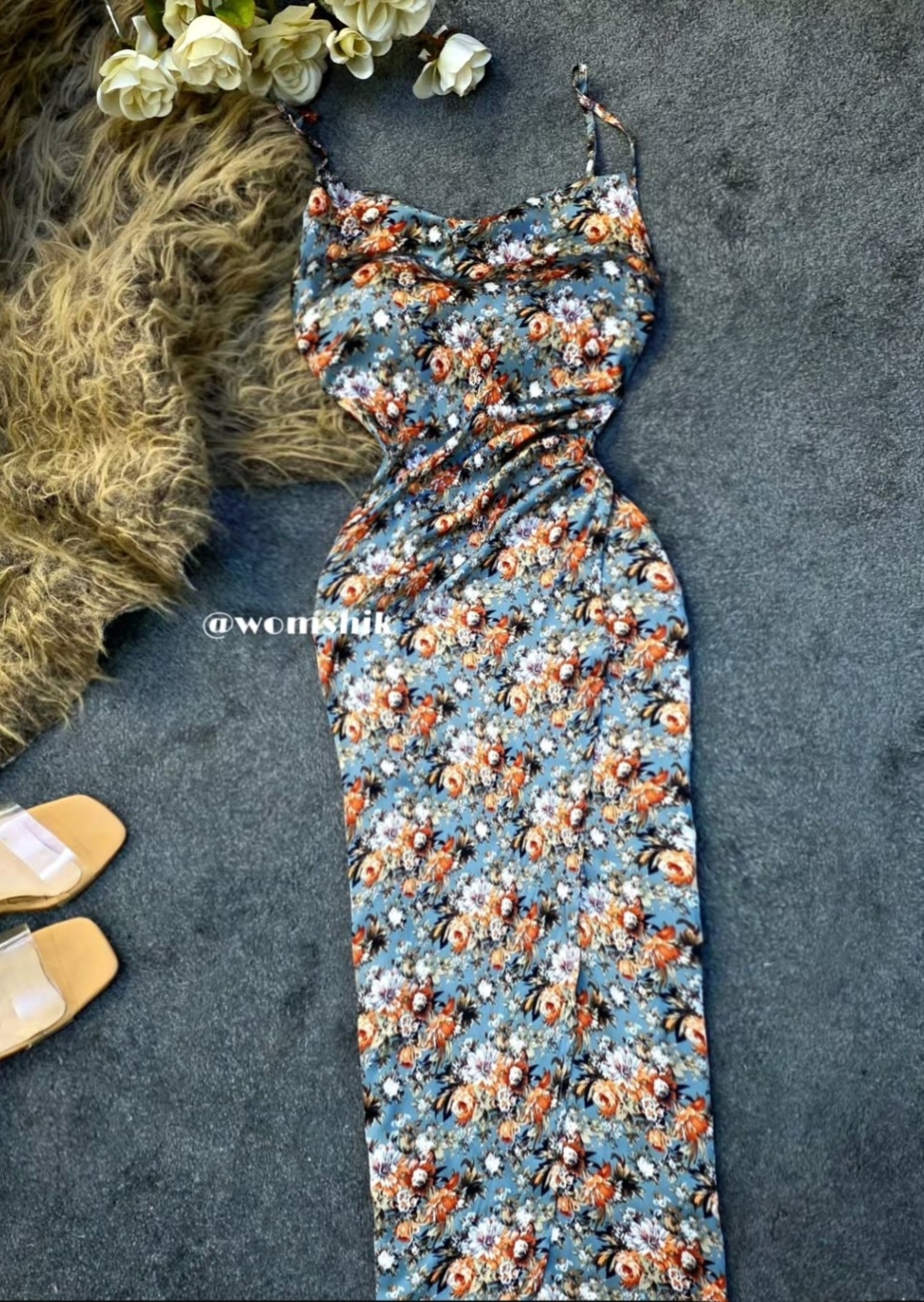 پیراهن ساتن گل ریز 🥇